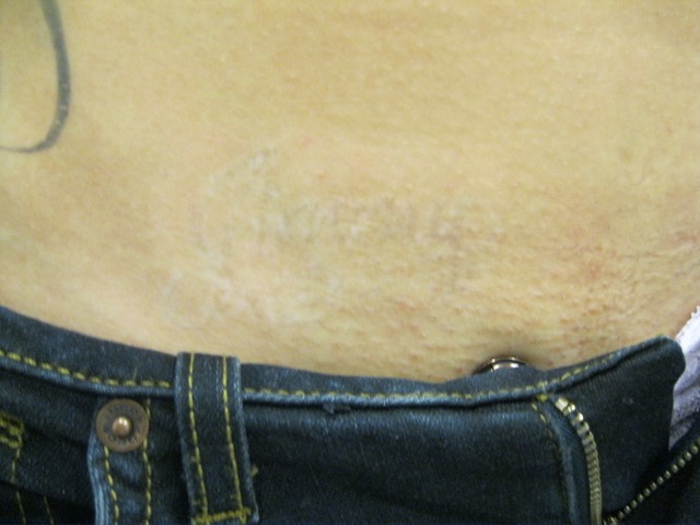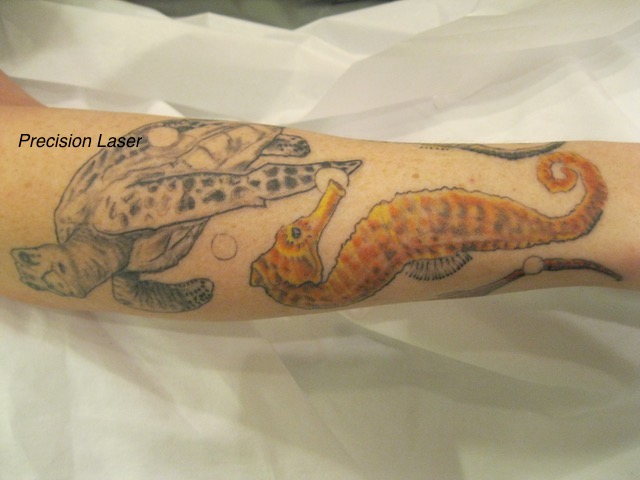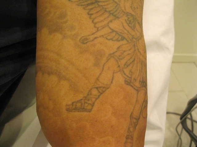 Here’s an example of some laser tattoo removal work we performed on a customer’s forearm: